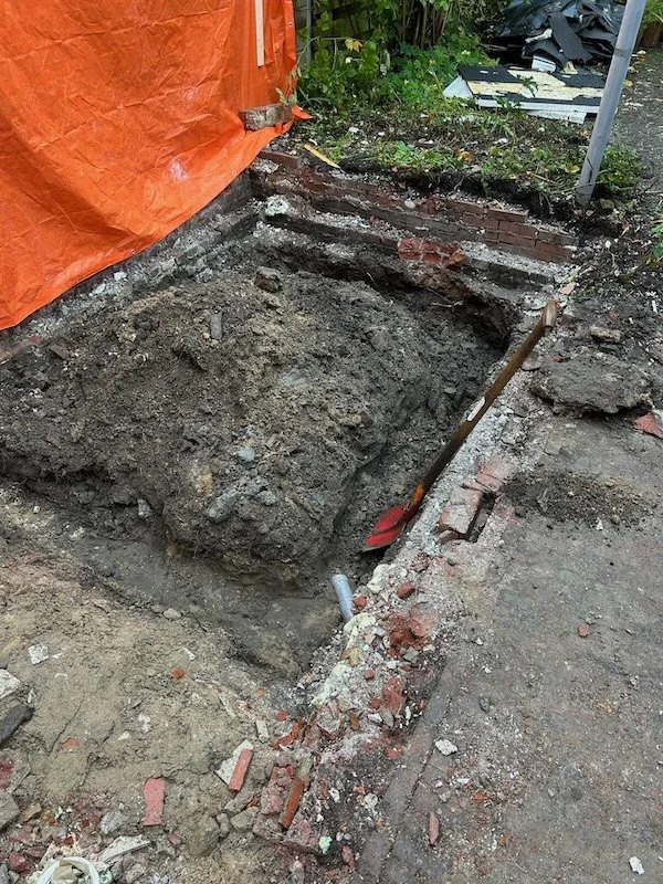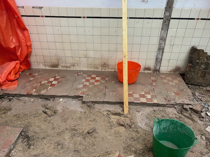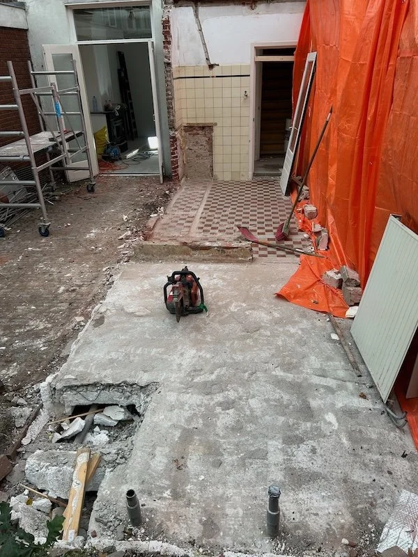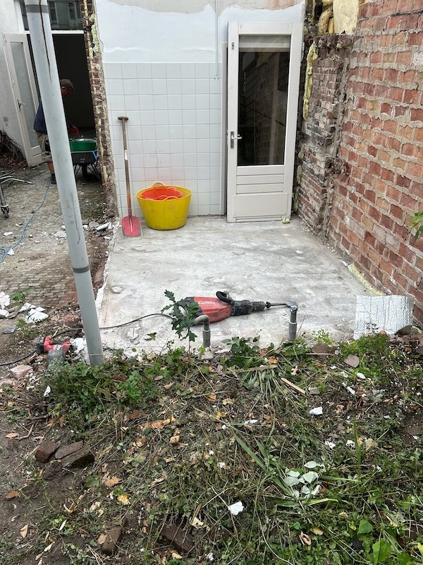 Metselwerk verwijderd en opgeruimd, enkel nog de vloer