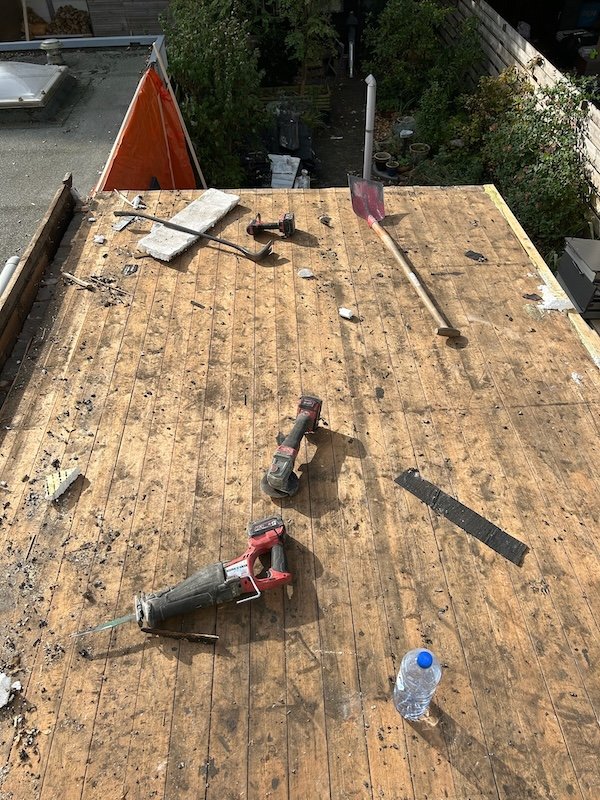 Het resultaat. Vakkundig verwijderd, zodat er genoeg ruimte is voor de nieuwe aanbouw